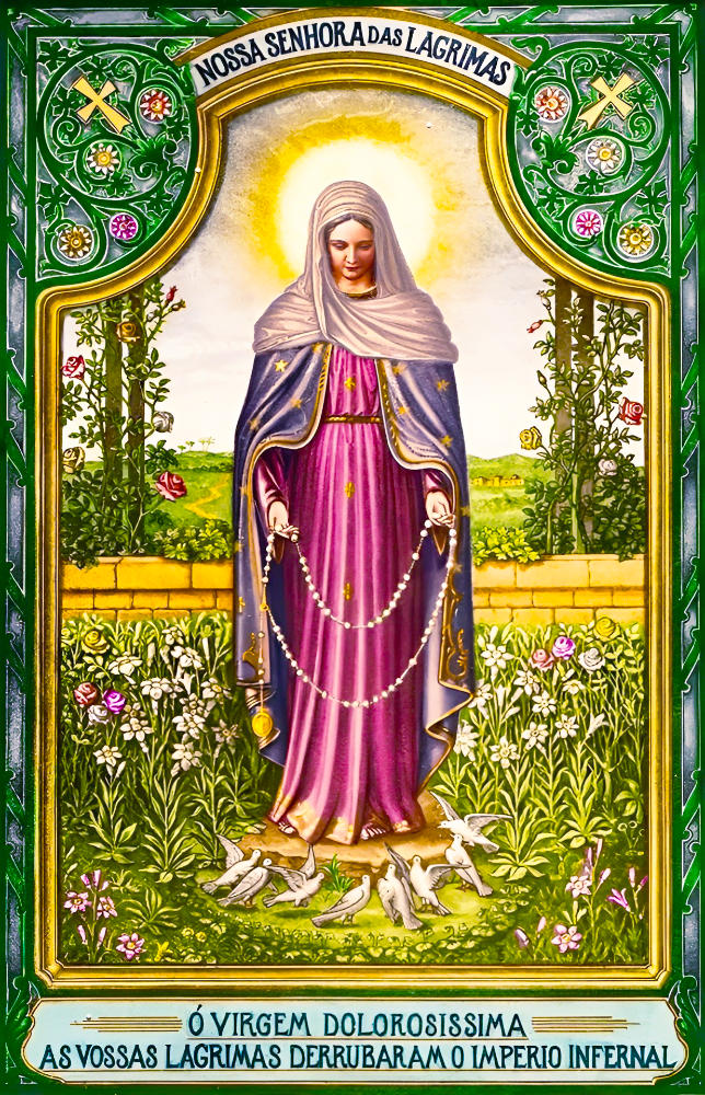 イエス・キリストの最も貴重な御血に次いで、天国の我々のお母さんの涙ほど感動的で効果的なものはありません!ゴルゴタの道と十字架の下での彼女の多くの涙を思い出してください。彼女は神聖なる息子への侮辱に対して償いのために苦しい涙を流しましたが、それは過去にも未来にも受けるものでした。また、神の戒めに従わない多くの魂たちのために彼女は永遠に失われることを悲しみながらも辛い涙を流しました。