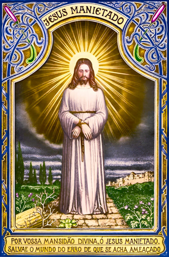 「あなたのかけらの神聖な優しさによって、オ・縛られたイエズスよ、世界を脅かす誤りから救いなさい。」