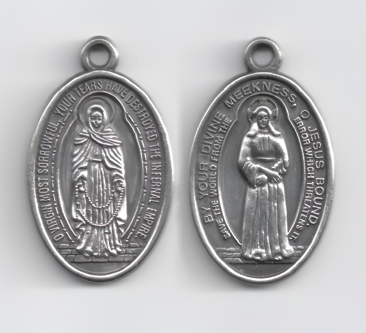 あなたの神聖な優しさによって、オ・鎖に繋がれたイエスよ、世界を誤りから救い出してください!悲しみの乙女よ、あなたの[血]涙は地獄の帝国を打ち倒しました!
